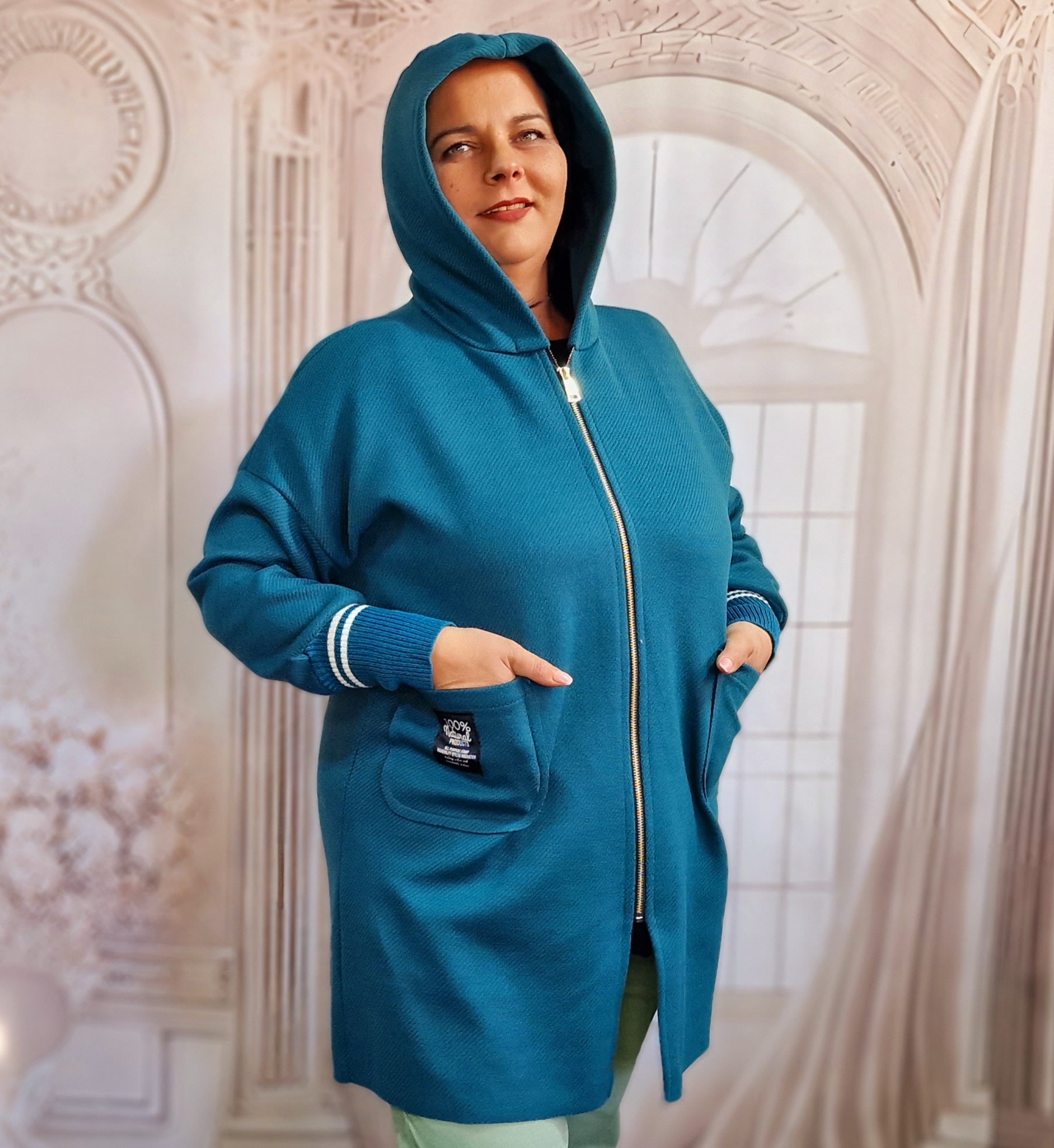Hanoracul vine într-o nuanță de albastru petrol, potrivită pentru orice sezon și ușor de asortat cu orice altă piesă din garderoba ta. Gluga adaugă un plus de funcționalitate și stil, fiind ideală pentru zilele mai răcoroase. Detaliul fermoarului de-a lungul întregii lungimi face ca hanoracul să fie ușor de îmbrăcat și purtat. Buzunarele frontale adânci îți oferă spațiu suficient pentru lucrurile esențiale sau pentru a-ți ține mâinile calde.