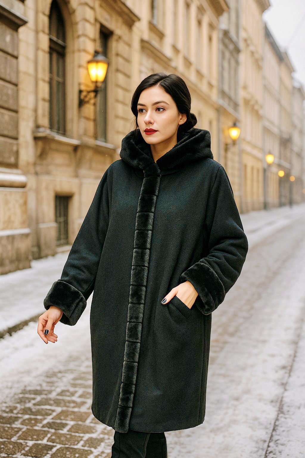 Designul paltonului este gândit pentru a pune în valoare feminitatea, fără a compromite confortul. Croiala amplă creează o linie elegantă și fluidă. In timp ce gulerul și detaliile bine definite adaugă un plus de stil. Poate fi purtat deschis pentru un look relaxat sau închis pentru un aer sofisticat și căldură sporită.