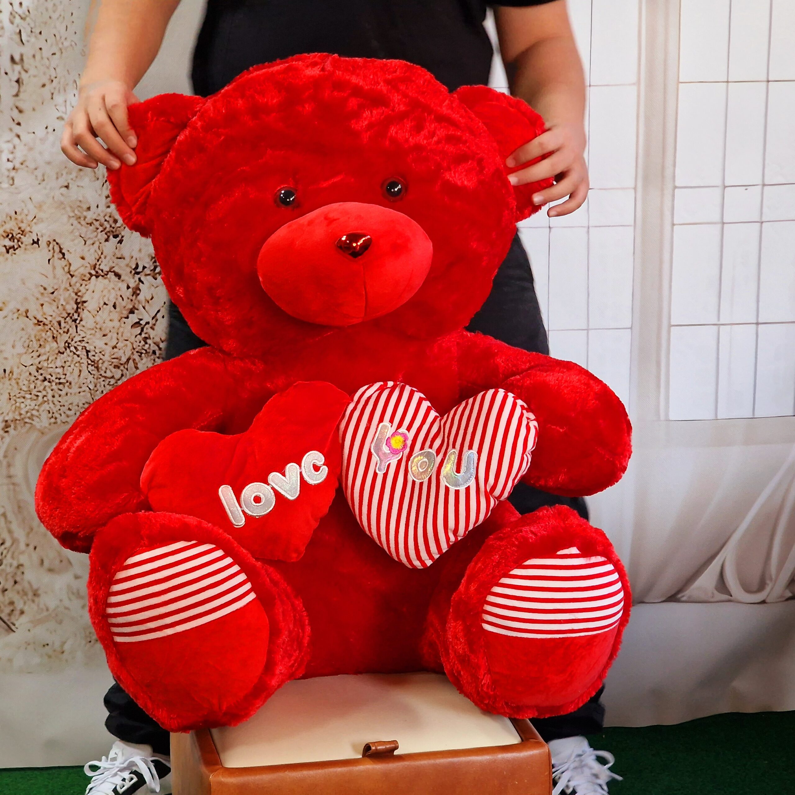 Urs pufos Love gigant rosu 77cm